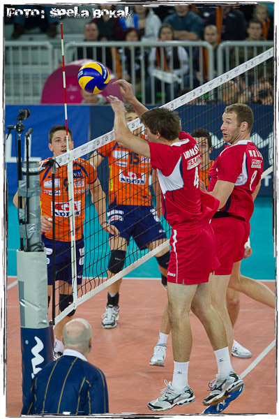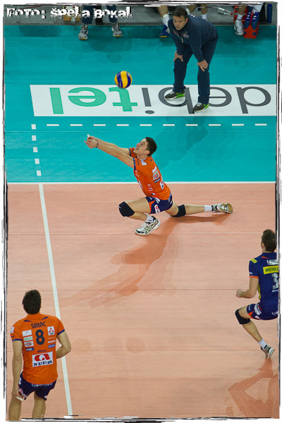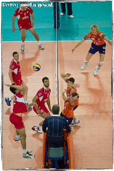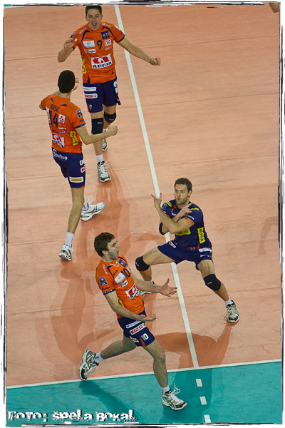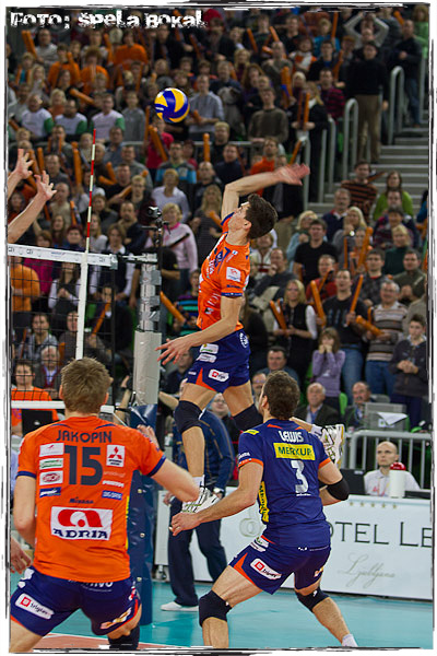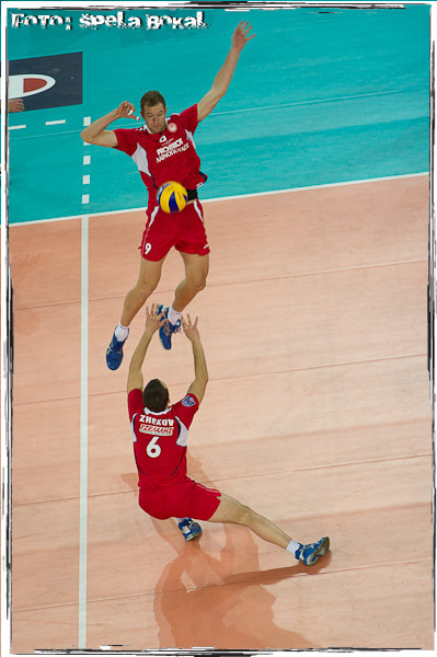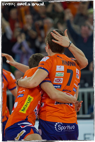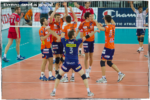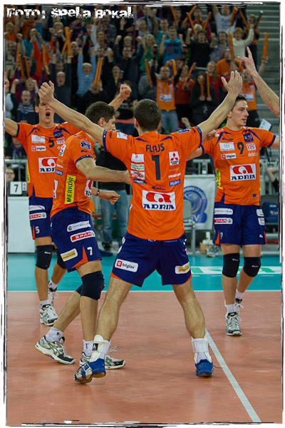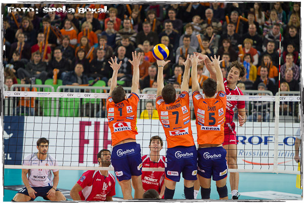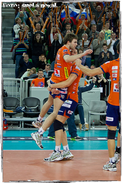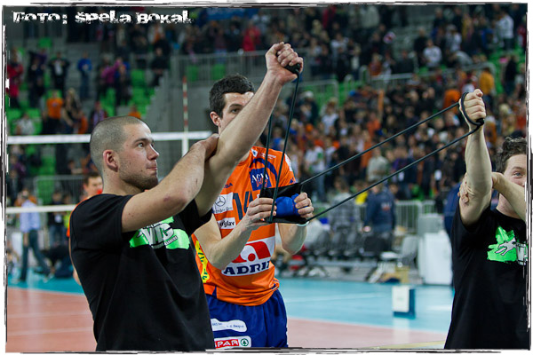 Pa se vrnimo nazaj na včerajšnjo tekmo in spektakel v Stožicah. Dobri dve uri so potrebovali Blejci, da so drugič v tednu dni strli upor Grške ekipe Olympiacos. Po prvih dveh nizih, ko so igralci ACH volley-a vodili z 2:0 verjetno ni nihče pomislil, da bomo gledali še 3 sete. V nadaljevanju so se Grki navadili na močan pritisk iz tribun in močno pritisnili s servisom, kar je povzročalo nemalo težav našim sprejemalcem, za povrhu pa so grešili pri servisu in izid je bil izenačen na 2:2. Po ne preveč spodbudnem odločilnem petem setu, ko so gosti zamenjali strani pri vodstvu 5:8 je na servis prišel Jakopin in dodobra načel Grške sprejemalce, za nameček pa je deloval naš blok in obramba. Z delnim izidom 6:0 so Blejci prešli v vodstvo in z odlično igro v polju ter napadu zadržali nekaj točk prednosti in slavili pomembno zmago, ki jih že pelje v drugi krog tekmovanja Lige prvakov.