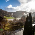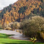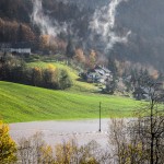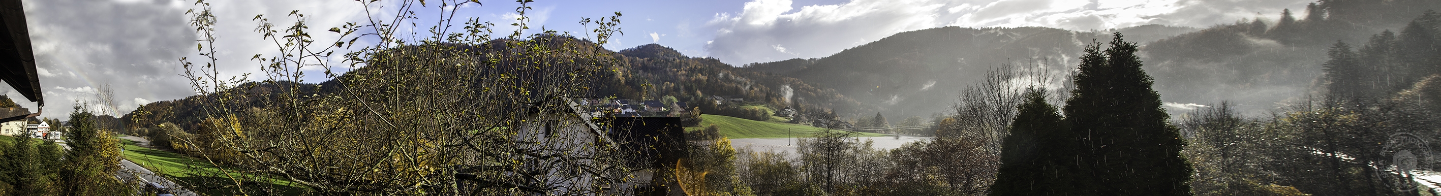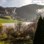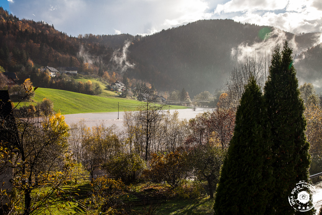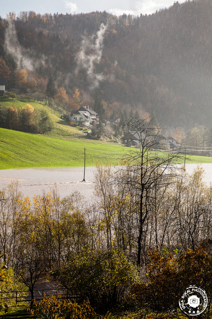 Letošnja jesen je resnično nemogoča in povsem nasprotje poletja, ko je vladalo sušno obdovje. Tokrat zemlja enostavno ni sposobna sprejeti take količine vode in tako je Poljanska Sora prestopila bregove in na delih povsem ohromila promet. Tako velika ni bila vse od leta 1991, ko se bile velike poplave, ki so odnašale mostove,… tokrat so mostovi obstali, a se je Sora raylivala desno in levo, kar se vidi na fotografijah, ki sem jih posnela iz balkona hiše!