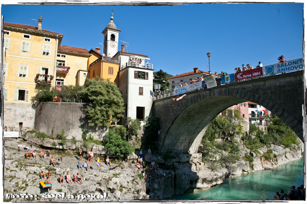 Sama sem bila prvič prisotna na prireditvi, ki je bila za gledalce brezplačna in nabralo se jih je polno tako na levem kot desnem bregu reke Soče. Iz vrha mostu v reko se je pognalo 12 tekmovalcev, ki so skakali v tred disciplinah in dveh serijah. Občinstvo so najprej ogreli pri skoku na noge, sledil je skok na glavo ali tako imenovana lastovka, ki je nekaterim resnično lepo uspela, tretji skok pa je bil figorativni in tako najbolj zanimiv in adrenalinski. Gledalci so z navdušenjam spremljali in nagradili vse tekmovalce, posebej pa 73 letnega Tržačana Pina Aubla!