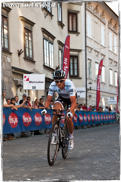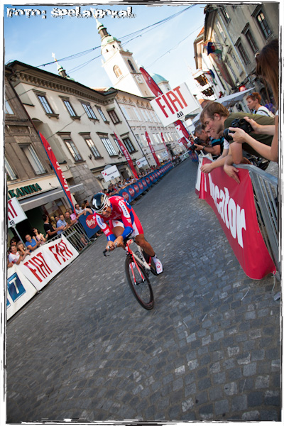 V našem glavnem mestu je danes štartala 18. kolesarska dirka po Sloveniji, s posamičnim kronometrom dolgim le 6,6 km. Čeprav kratek pa vsaj na začetku malce bolj zahteven kronometer, je prinesel zmago našemu kolesarju Perutnine Ptuj Robertu Vrečarju s povprečno hitrostjo nekaj čez 50 km/h. To je bila 1 etapa, sledijo 2. etapa od Kopra do Nove Gorice (190 km), 3. etapa od Tržiča na Golte (171 km) in zadnja 4. etapa od Ptuja do Novega Mesta (181 km). Na dirko je prijavljenih 15 ekip in 115 tekmovalcev. Več zanimivih in koristnih podatkov lahko dobite na uradni strani dirke, sama pa spodaj objavljam nekaj fotk iz kronometra danes.