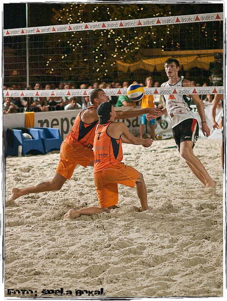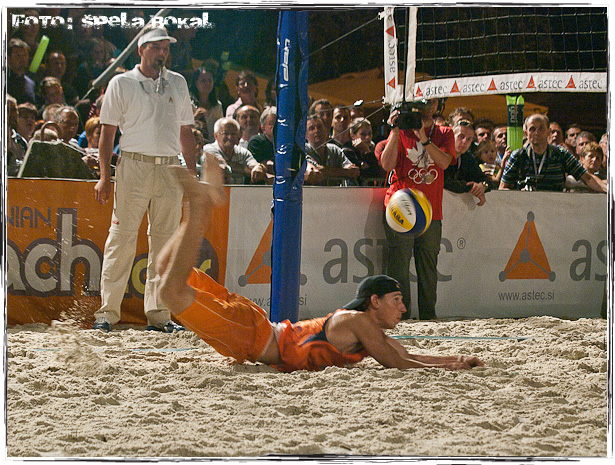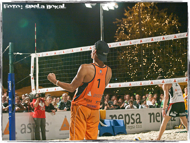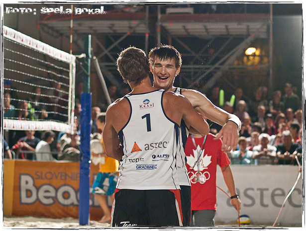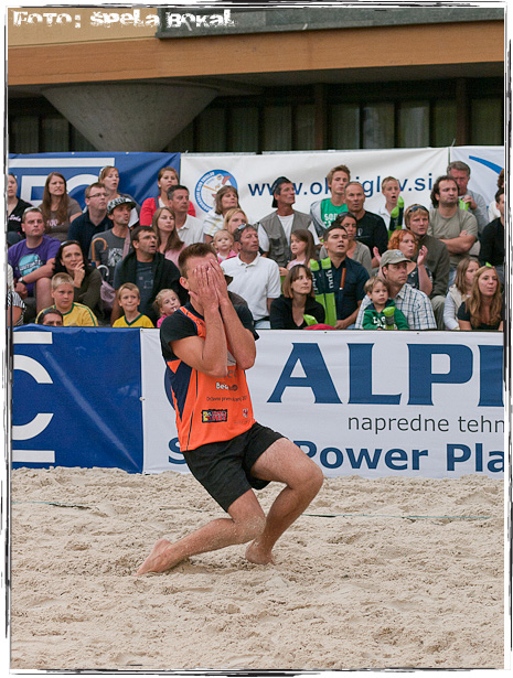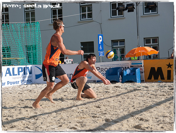 Že v prvem nizu so bili gledalci priča atraktivnim potezam na obeh straneh igrišča, a je izkušenost Jerneja Potočnika nagnila tehtnico v prid ekipe Debitel – Asics Mojca Šport, tako da Zemljak in Pajenk (Lineal-NES) nista uspela uloviti zaostanka treh točk že od prve polovice niza. Prvi niz je bil odločen, končni rezultat pa 21:17. Ko je že kazalo, da bosta Potočnik/Jakopin nadigrala štajerskega tekmeca, sta se Pajenk/Zemljak le prebudila in držala korak z vodilnima do desete točke. Prepričljivejša igra na mreži ju je popeljala do vodstva 18:14, a sta prednost izpustila iz rok in z 22:20 doživela letošnji prvi poraz na slovenskih tleh.