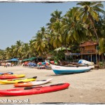 Po dobri uri vožnje smo prišli v vasico Palolem, ki je precej bolj turistična kot sem predvidevala, a hkrati zelo prijetna. Glavna ulica, ki vodi do obale je polna malih restavracij, hotelčkov in uličnih prodajalen. Med vsemi pa se najdejo tudi turistične agencije, menjalnice in možnost uporabe interneta. Širša okolica je posejana s kokosovimi palmami, malce ven iz mesta pa seveda raste tudi riž,… Res nam ni hudega, pa sej boste vidli po fotografijah spodaj. 🙂 Obala oz. zaliv, kjer je center vasi je dolga cca 800 m polna raznih bungalovov in restavracija na obali. Ponudbe seveda ne manjka in tukaj tudi povsem legalno prodajajo pivo in to po povsem dostopnih cenah 60-80 rupij za 650ml, seveda se pa najdejo tudi lokali, ki ponujajo Happy hour – 2 piva za ceno enega in to čez cel dan. 🙂