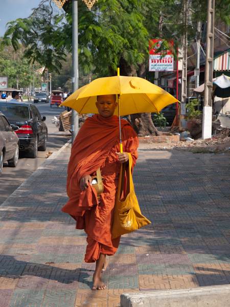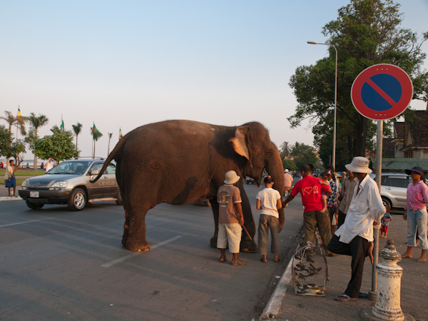 Iz Kampota sva šla potem zjutri direktno v Phnom Penh. Če v celi Kambodži do sedaj nisva srečala slona, sva zadnj dan kar dva in to sredi ulice. Prvega so uporabljali kot delovnega slona sredi neke vasice na pol poti proti Phnom Penu, drugega pa uporabljajo prevsem za turiste, sam je vseeno zanimivo zagledati slona sredi glavnega mesta, kako se šeta po kar precej prometni ulici.