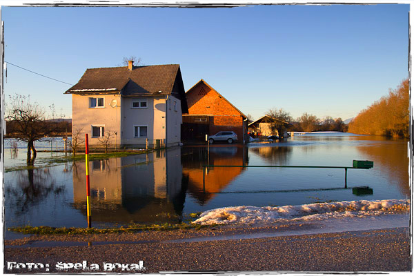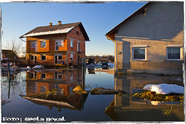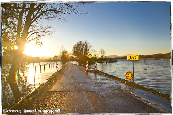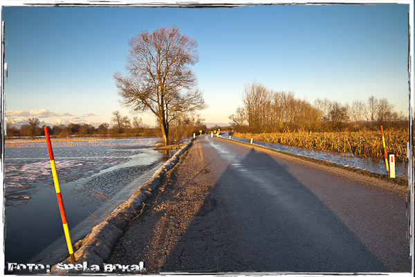 Snežiti in deževati je prenehalo, končno se je pokazalo sonce in temperature so se spustile vsaj čez noči pod nič stopinj. Kljub zimi sem slišala, da na območju Ljubljanskega barja voda ponovno grozi stanovalcem Črne vasi in Lipe. Zato sem se odločila, da si grem pogledati, kajti stanje se naj bi počasi umirjalo. Da je voda že drugič letos grozila, te spomnijo znaki dovoljeno samo do zapore, takoj ko zapelješ na Ižansko cesto. In res voda je praktično povsod levo, desno, okoli hiš in seveda tudi na cesti. Table za zaporo ceste se kar hitro pojavijo, a tokrat je voda že tiloko upadla, da se že da zapeljati mimo in tudi policaji, ki kontrolirajo območje glede prepovedi vožnje ne ukrepajo. Spodaj so fotke kod dokaz, da tudi v mrzlih zimskih dneh voda lahko grozi.