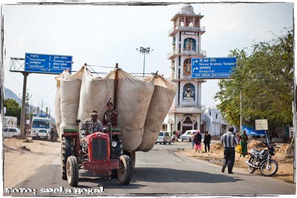 Puškar je oddaljen dobre 3 ure vožnje z avtom, a zadnjih 40 km je vožnja precej adrenalinska, ker cesto šele gradijo, med tek ko je do tja ves čas tripacovnica v obe strani. Ogromni tovornjaki 3x večji kot pri nas tovorijo robo po vsej Indiji in ko ti pripelje nasproti ti drugega enostavno ne ostane kot da se po čim hitrejšem postopku odstraniš iz ceste. Takih srečanj smo danes imeli kar nekaj, a hitrost ni velika, tako da smo imeli vedno čas in se odmaknili, ter dali prednost močnejšemu.