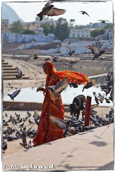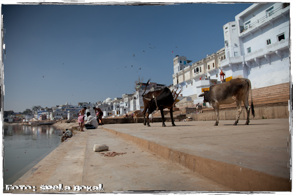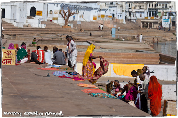 Puškar je prijetno majhno mestece polno trgovinic, turistov kar precej in vzdušje vsaj meni precej boljše kot drugod. Znan je predvsem po edinem Brahma templju v Indiji in neštetimi stopnišči, ki vodijo do umetnega jezera. Ulice okoli jezera so vse en market od spominkov in tekstila do turističnih agencij, hotelov, restavracij,… Stvari so res lepe in kar težko se zadržujem, da ne bi kaj kupila, kajti cene tu so precej nižje kot drugod. Na ulici pa smo srečali še Kristino, ki sem jo spoznala teden dni pred potovanjem! Soba ni ravno nekaj posebnega, a bomo preživeli, mogoče celo podaljšamo za en dan, če bo mogoče! Temperature se počasi dvigajo in tekom dneva že lahko nosim kratke hlače in majico, ko sonce zaide pa se hitro shladi in potrebuješ dolge rokave!