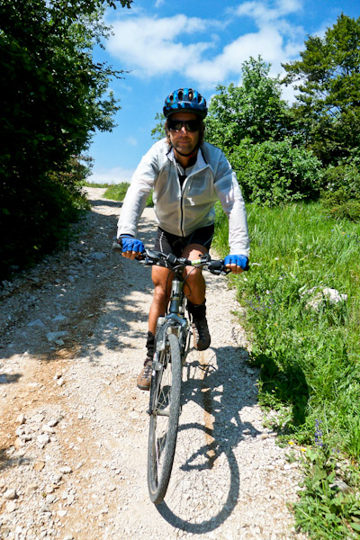 Vremenska napoved za osrednjo Slovenijo ni bila najboljša, zato sva se odpravila na primorski konec in odločitev je bila prava. Avto sva parkirala za nogometnim igriščem v vasici Podgorje. Slavnik je bil direktno pred nama, a glede na to, da sva se nanj podala s kolesom, sva si izbrala malce dalšo in bolj položno pot. Iz vasice Podgorje sva zavila na pešeno cesto ob železnici, ki naju je pripeljala do prijetne stare primorske vasice Prešnica, od koder se pot strmo vzpne. Po približno 2 km malce slabše poti se priključimo na cesto, ki pelje iz Hrpelj proti Slavniku. Na smerokazu je bilo zapisano še 7,5 km do vrha. Zaradi dežja v preteklih dneh, je bila cesta precej slaba, a s kolesom še vedno prevozna, z avtom bi imel na delih poštene probleme. Nama je uspelo in na vrhu sva si privoščila skutin zavitek z borovnicami in radler. Glede na to, da Slavnik velja za prvi tisočak iz primorske smeri, sva naredila skoraj 600 m nadmorske višine. Za spust sva si izbrala krajšo, strmejšo pot, ki pripelje direktno v vasico Podgorje približno 100 metrov od športnega igrišča. Tako kot pelje na Slavnike več poti, pelej tudi dol več različno zahtevnih poti in če se gor podate peš, bodite pozorni na kolesarje, ki jih je kar nekaj. V najinem primeru je bilo več kolesarje kot pešcev!
