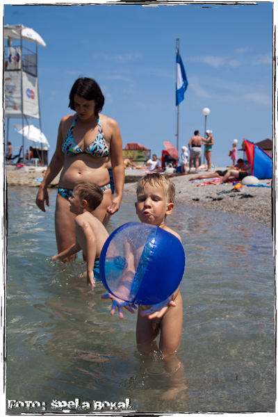 Zadnji teden je bil res peklensko vroč, zato je bila bližina vode še kako priporočljiva! Oddih na morju, pa čeprav samo za en dan je bil tako kot nalašč. Res imamo malo obale, lepe …. skor ne, a je vseeno bolje kot nič, za povrhu vsega pa ti zaračunajo še parkirnino in vstopnino na plažo. Tako, več ne bom napisala, ker že tako verjetno večina ve za kateri košček obale gre, če ne, jo boste mogoče spoznali po fotkah. Kljub vsemu je pasal oddih, pa čeprav tokrat v družbi nečakov,…, da malce razbremenimo mami! Tokrat so se po morju podili trije mulci, ki jih je bilo potrebno ves čas nadzirati, saj še niso vsi odlični plavalci, kljub temu, da se pogumno podajo v morje brez rokavlkov in šlavfa, po domače povedano. Sama se spominjam, da so me v mlajših letih komaj spravili iz vode, pa čeprav me je zeblo, da sem imela povsem modre ustnici in čeprav sta minili dobri dve desetletji, je situacija povsem enaka. Tokrat mi ni kazalo drugega, kot da grem tudi sama malce poplavati – letos prvič na slovenski obali! Glede gužve je bilo v