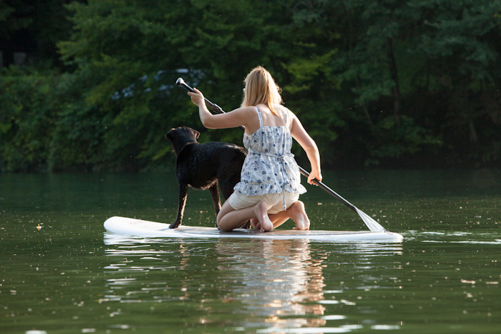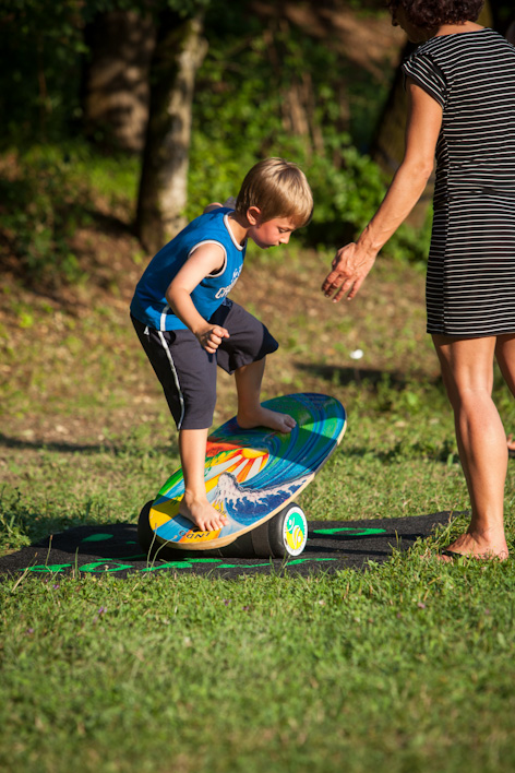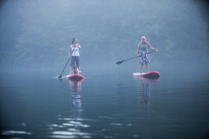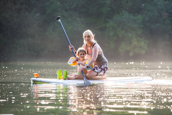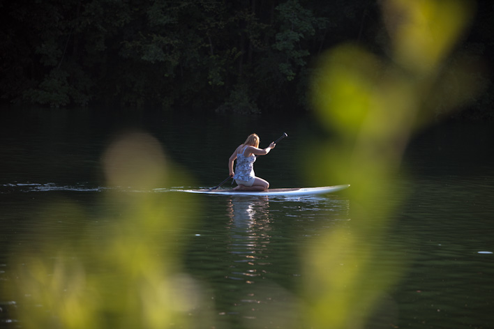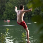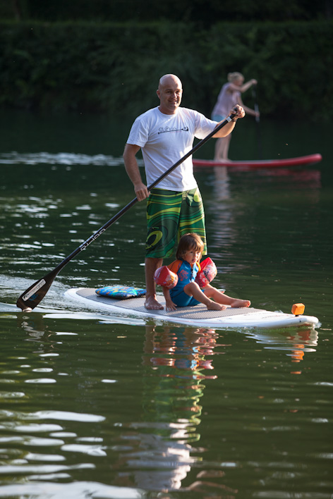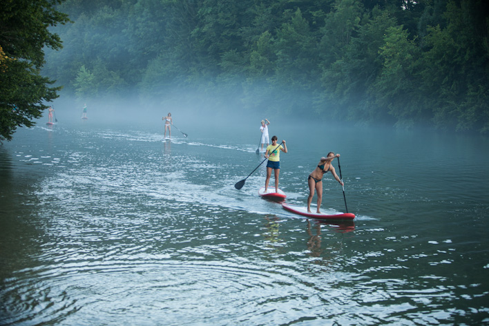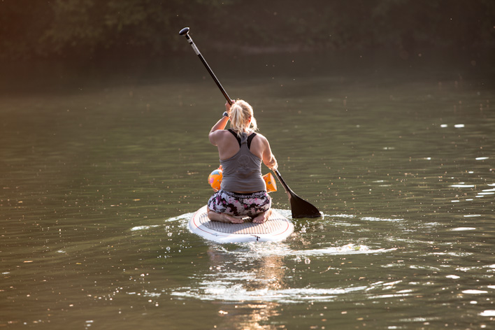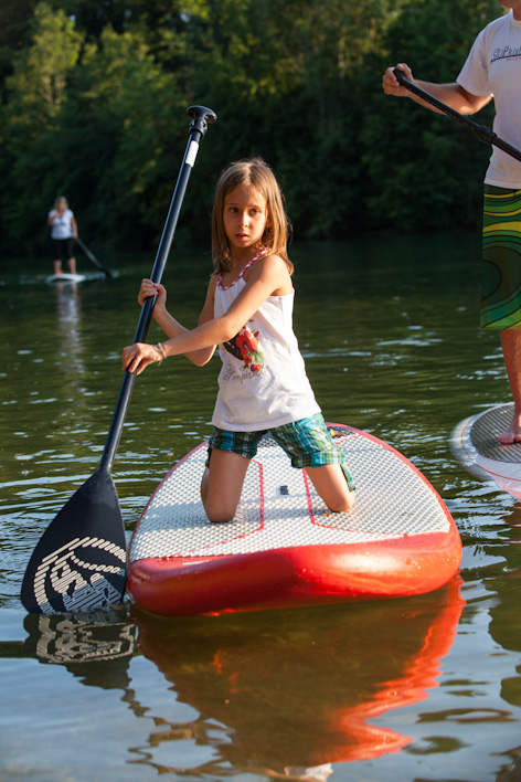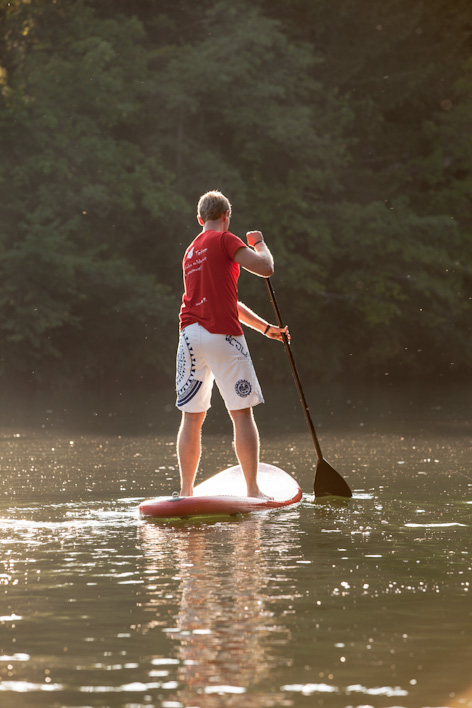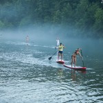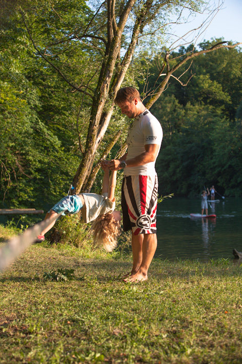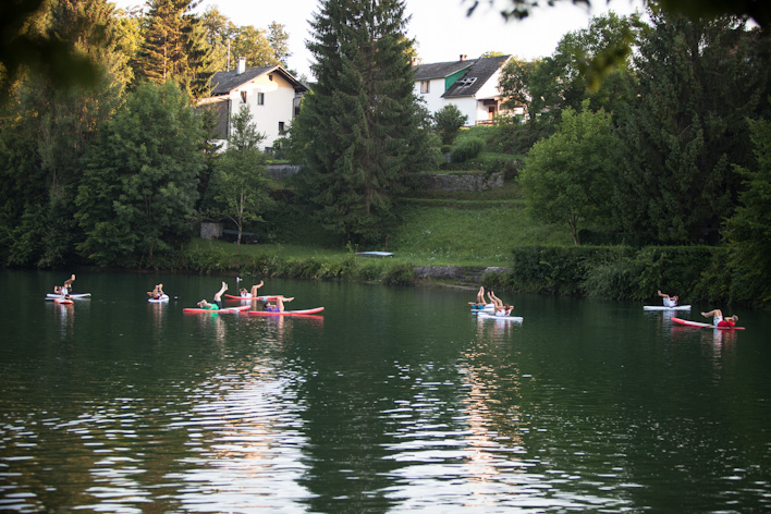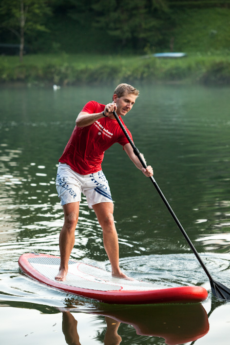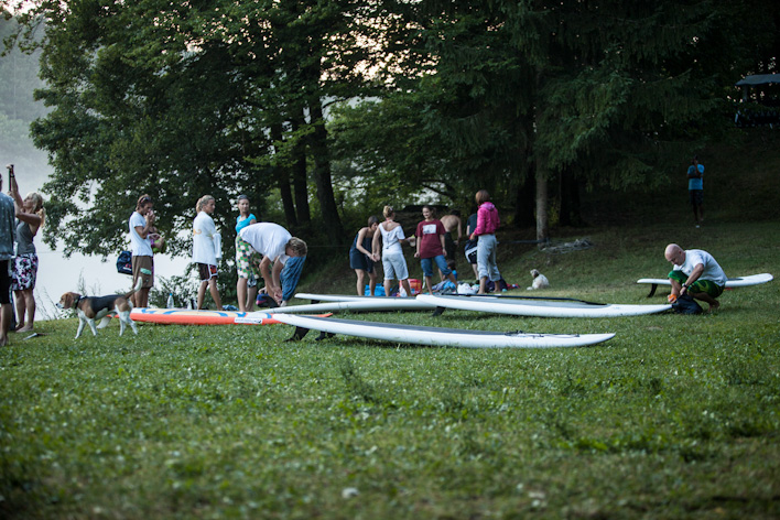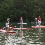 SUP after work je le eden od možnih dogodkov, ki je potekal pretekli teden v kampu Smlednik, katerega sem se tudi sama udeležila in končno poizkusila svojo srečo na tej plavajoči deski – SUP-u. Moram reči, da je bilo odlično in vsekakor zelo zabavno druženje v naravi, ob vodi in na vodi. Poleg številnih SUP-ov, ki so bili na voljo vsem radovednim obiskovalcem, je bila na voljo tudi gurtana ali slackline ter indo board. Vse troje skupaj (SUP, slackline in indo board) pa so športi ravnotežja.