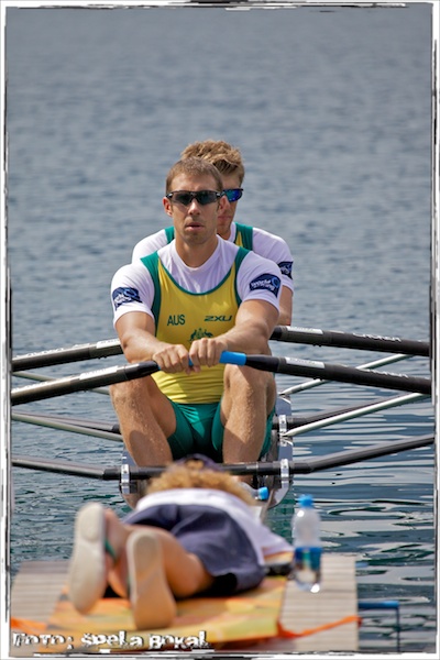 Sama sem se odpravila na Bled v petek, kajti na sporedu je bila finalna vožnja dvojnega dvojca, v kateri sta veslala Iztok Čop in Luka Špik. Vsem sta dobro znana, tako da jih ne bom posebej predstavljala! Ob jezeru, na startu in cilju se je nabralo kar nekaj gledalcev, ki so bučno spodbujali naša veslača, a tokrat se jima ni izšlo vse po načrtih in morala sta se zadovoljiti s 5. mestom, ki pa je kljub temu odlična uvrstitev in izpolnjena norma za Olimpijske igre 2012 v Londonu!