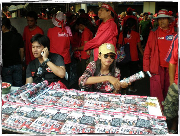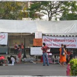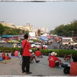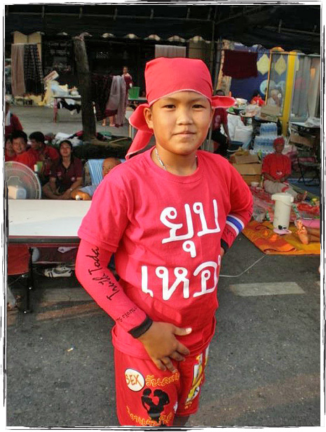 Sicer je malce dlje časa trajalo, da sem prišla do fotk iz Tajskega glavnega mesta Bangkoka in v medijih tako opevanih demonstracij! Še enkrat poudarjam, da na najbolj turistični ulici Khao San Road-u, kjer je nastanjenih največ turistov, ni čutiti nobenega pritiska in ni nobene panike za vse ki se nahajajo na drugi strani sveta. Res je, da je nekaj avtobusnih in ladijskih prevozov znotraj Bangkoka malce spremenjenih ali začasno določene linije ne vozijo. Res je tudi, da v preteklih dneh avtobus od letališča ni pripeljal na končno postajo pri Khao San Road-u, počasi se stvari umirjajo in protestniki že zapuščajo prizorišče, ki pa je resnično dobro organizirano, kar je razvidno tudi iz spodnjih fotk!