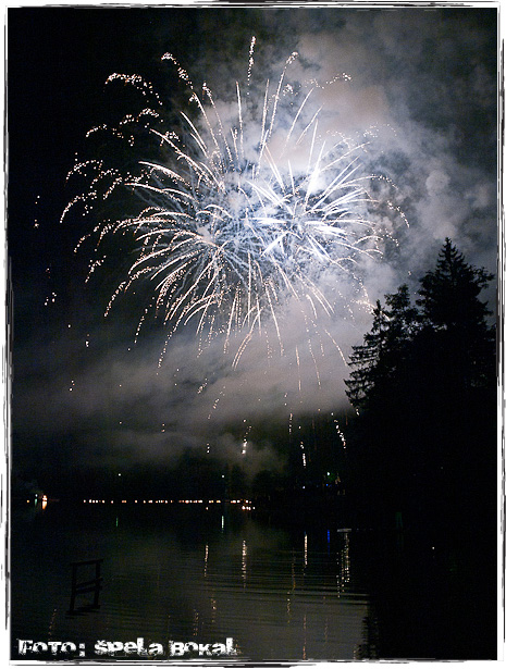 Ravno ta vikend se je tudi odvijala Kresna noč, ki velja za najbolj obiskano prireditev v Bohinju. Sobotni večer je znan predvsem po tradicionalnem kresu in spuščanju svečk iz jajčnih lupin na jezeru, ognjemetom ter zabavo z zabavnimi skupinami. Mi smo prišli ravno do časa, ko so točno ob 23.00 prižgali ognjemet in razsvetlili nebo nad Bohinjem.